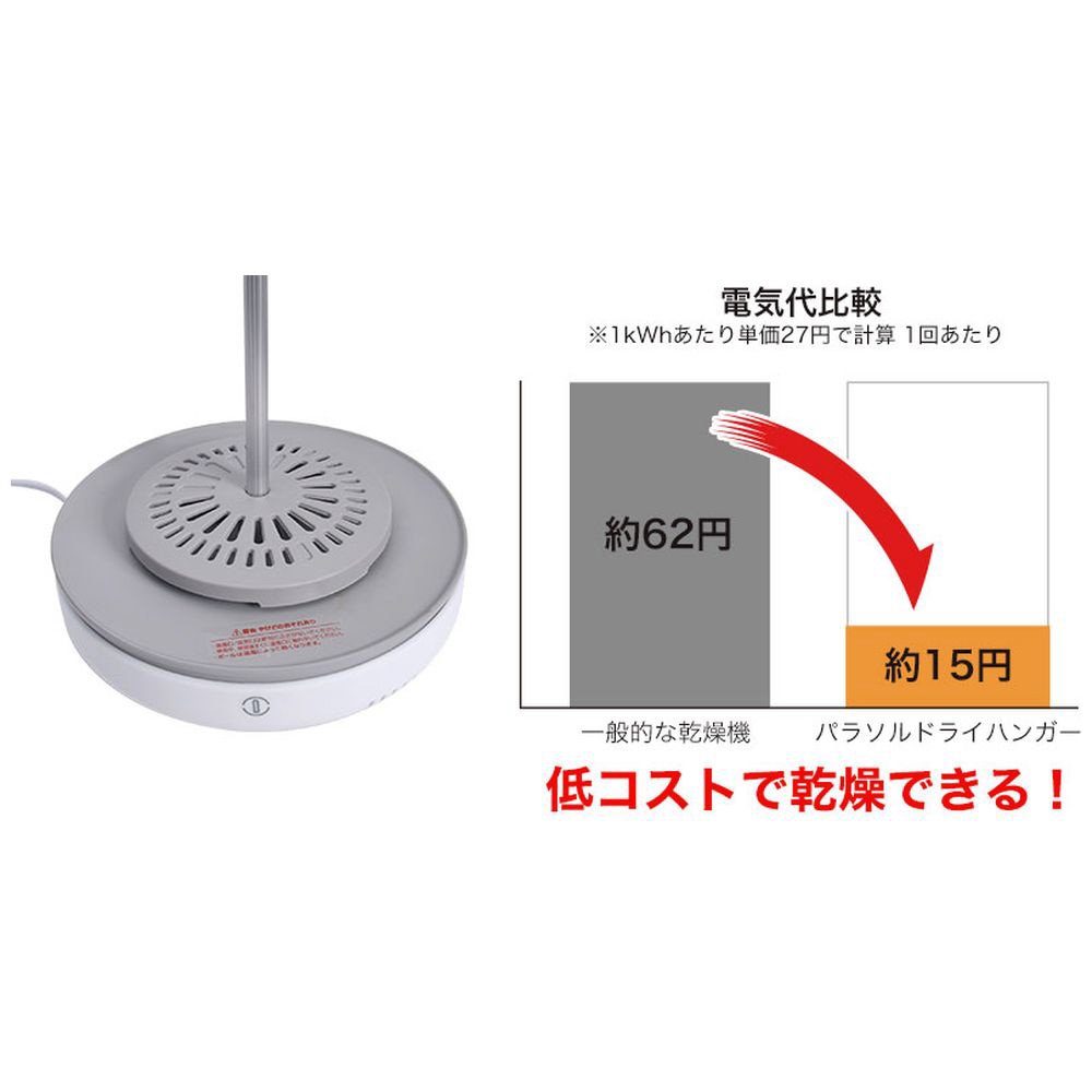 支柱とフックを外せばさらにコンパクトになるので、カバンに入る大きさになります。旅行や出張時などに持っていくことができます。操作は電源プラグを差してボタンを押すだけ。温度の調整などの難しい操作は一切なし!誰でも簡単に使いこなすことができます。そして電気代は1回(3時間使用)約14.5円(1kWh 単価27円)。一般的な衣類乾燥機のわずか4分の1以下で経済的です。