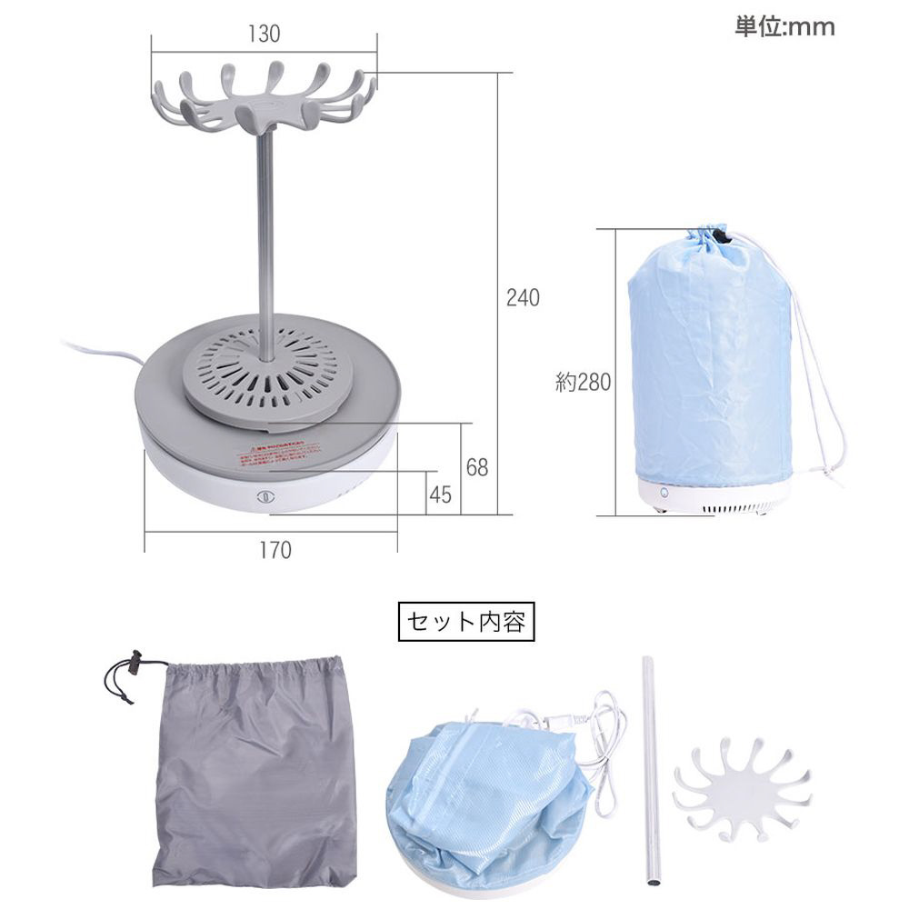 超小型手のひらサイズなのにパワフル乾燥!手袋や靴下、マスクが乾く卓上乾燥機。
