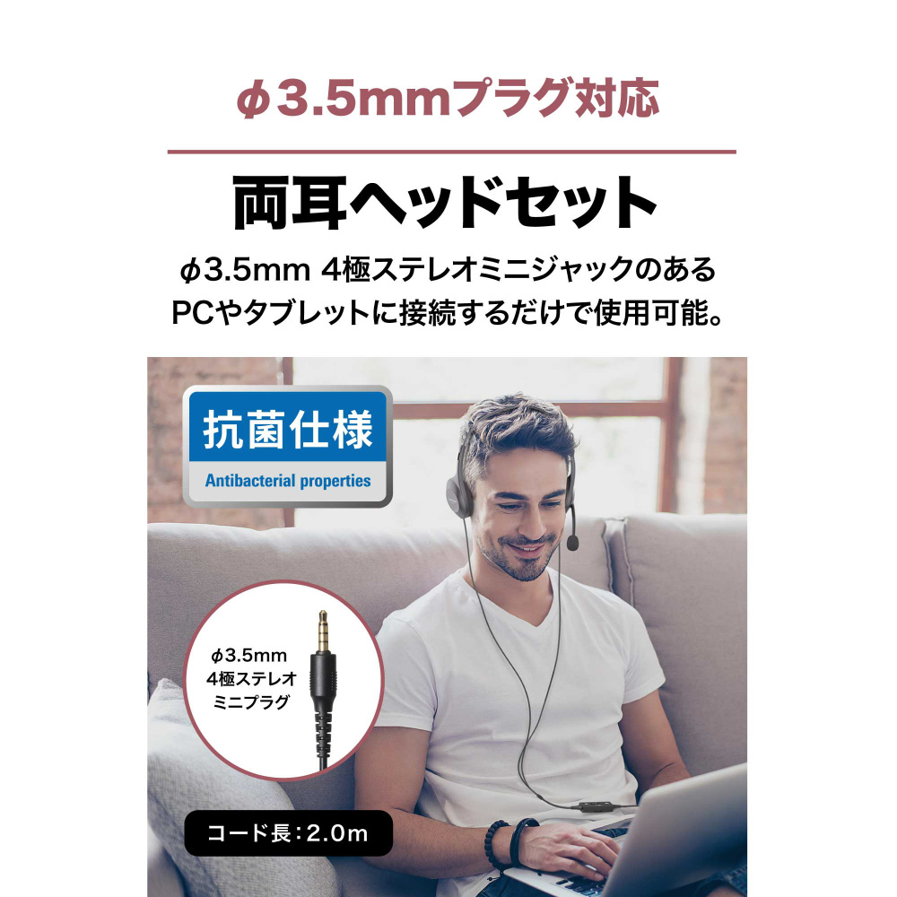 使いやすく、蒸れにくい、クリアに話せるΦ3.5mmプラグの両耳ヘッドセット
