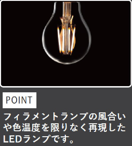 フィラメントランプの風合いと色温度を限りなく再現しました。