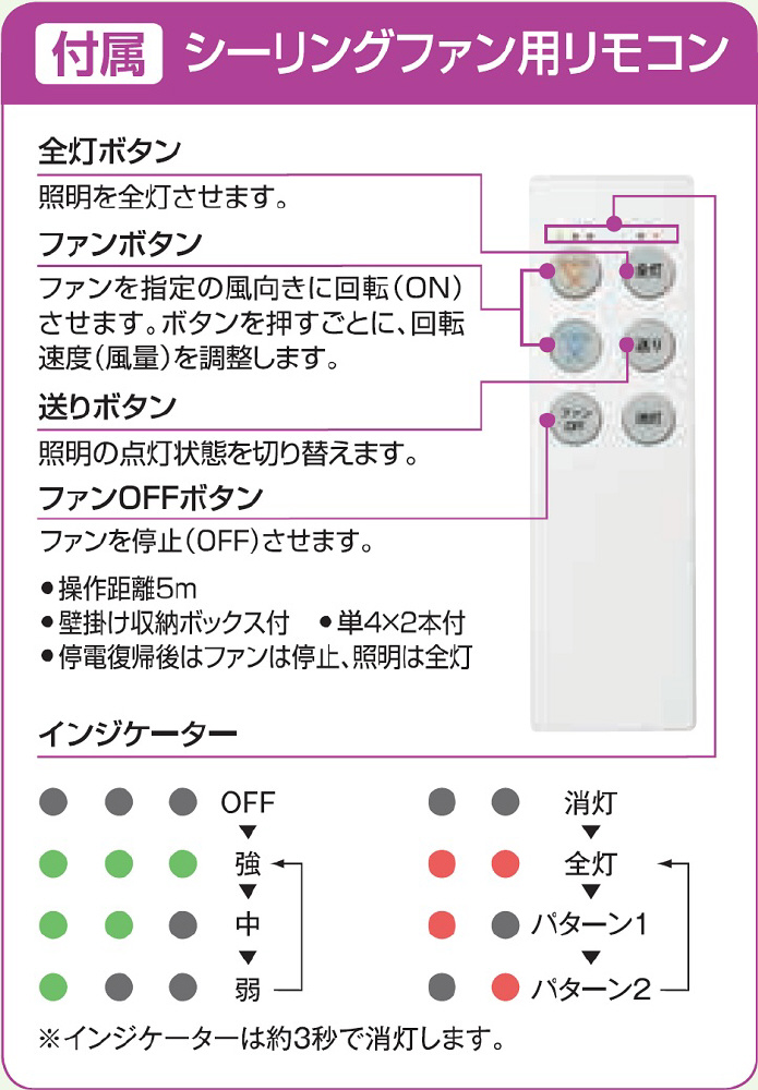 | 仕様1 | フィラメントランプを使用したシーリングファン |