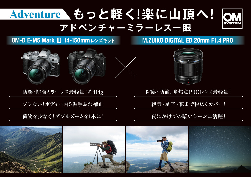 開放絞りF1.4の明るいレンズながら、質量247gの小型軽量化を達成。「OLYMPUS OM-D E-M5 Mark III」と組み合わせた場合は、質量約661gの小型軽量システムとなり、機動力を生かした軽快な撮影が可能です。