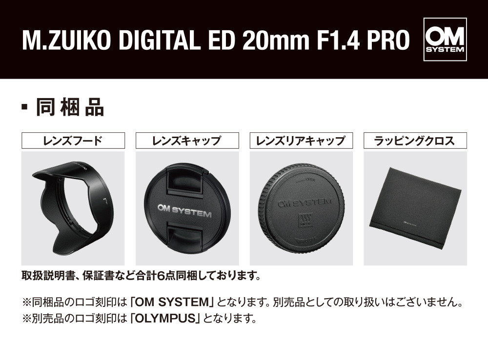 | 付属品 | レンズフード※、レンズキャップ※、レンズリアキャップ※、ラッピングクロス※、取扱説明書、保証書 ※同梱品のロゴ刻印は「OM SYSTEM」となります。別売り品としての取り扱いはございません。 |