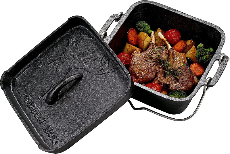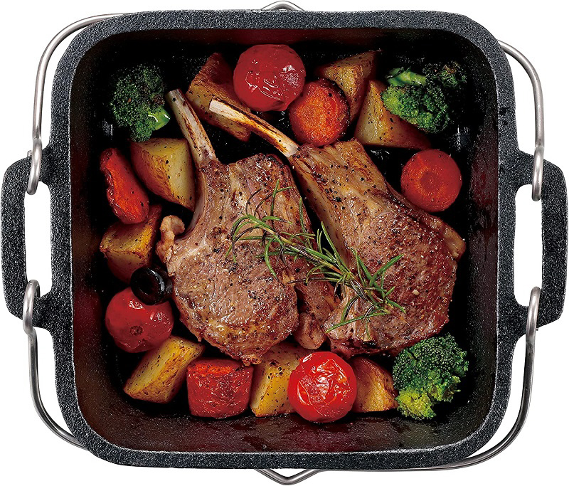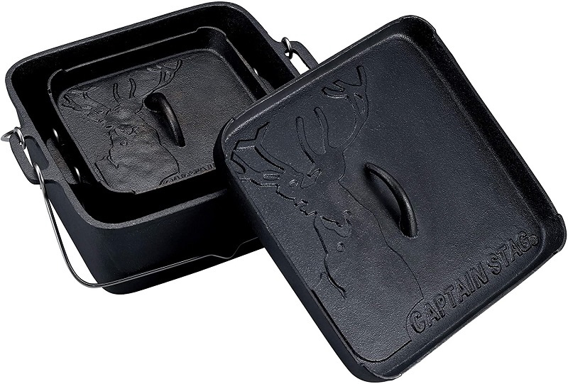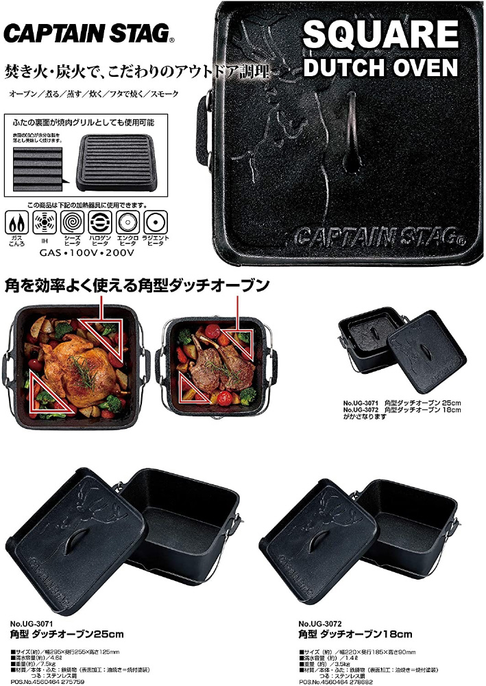 角を効率よく使えるダッチオーブン。ふたの裏面が焼肉グリルとしても使用可能。