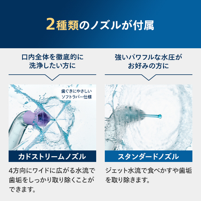 | 付属品 | カドストリームノズル×1、スタンダードノズル×1、電源アダプタ付属×1 |