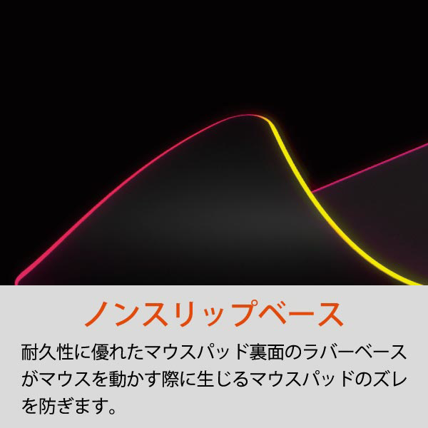 耐久性に優れたノンスリップラバーベースは、無駄な動作を極力減らすように設計されており、コンペティティブなゲーミングのために頑丈なプラットフォームを提供します。