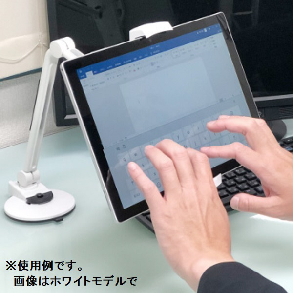 自由な角度で固定する事が出来、パソコンのモニターの横にサブPCのようにタブレットを設置することが可能です。