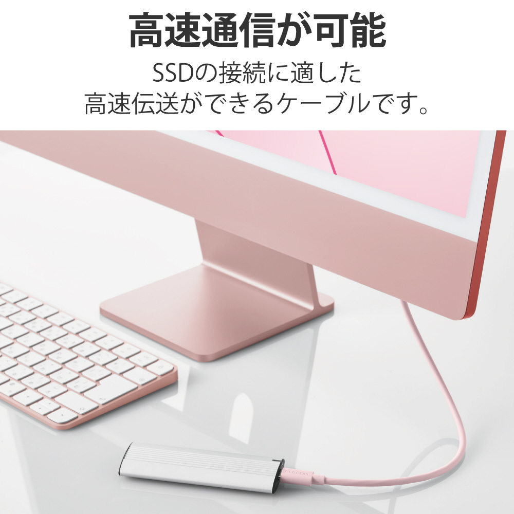 24インチiMacに合わせたカラーのUSB-IF正規認証品のUSB4ケーブル。 最大40Gbpsの高速転送が可能です。USB Power Deliveryによる最大100W (20V/5A)の充電が可能。