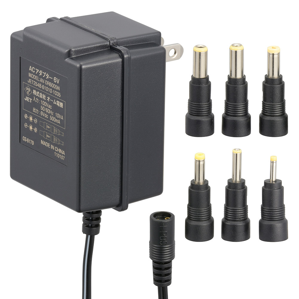DC6V(500mAまで)の外部電源端子付家庭用電気製品にお使いいただけるACアダプターです