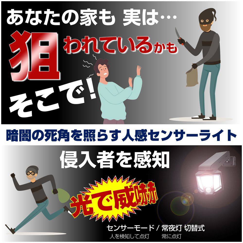 ■暗闇でセンサーが人や車の動きを検知して自動点灯