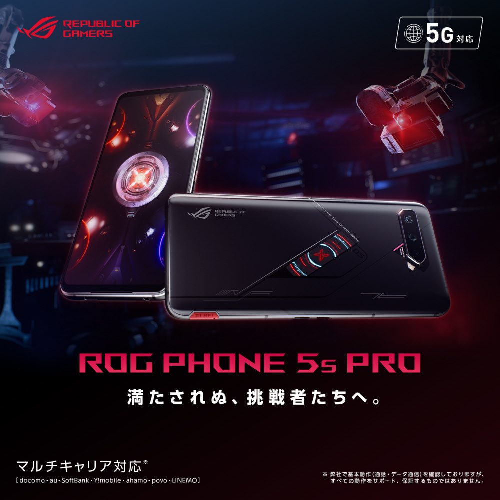 ROG Phone 5s Pro ファントムブラック Qualcomm Snapdragon 888 Plus 5G 6.78型 メモリ/ストレージ:18GB/512GB nanoSIM×2 SIMフリースマートフォン ファントムブラック ZS676KS-BK512R18