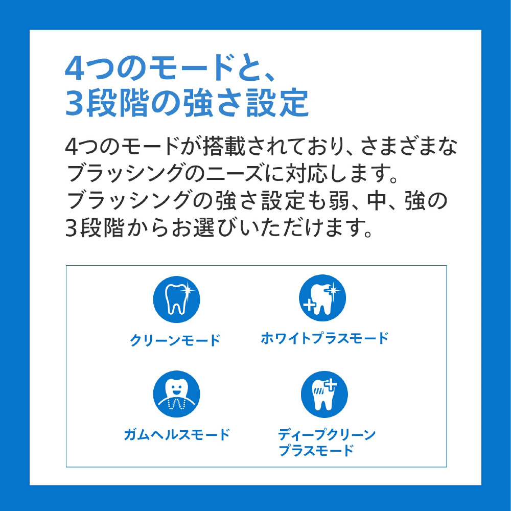 手磨きの最大10倍の歯垢除去力。4モード×3段階の強さ設定。