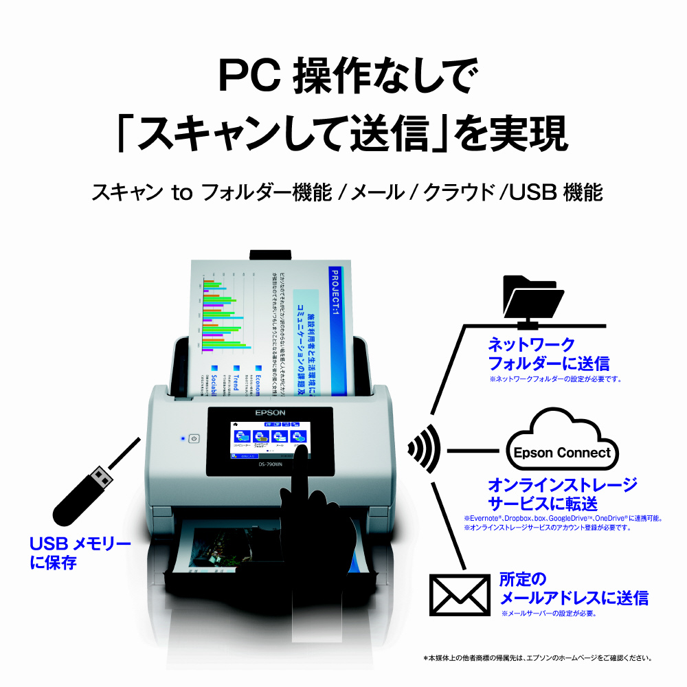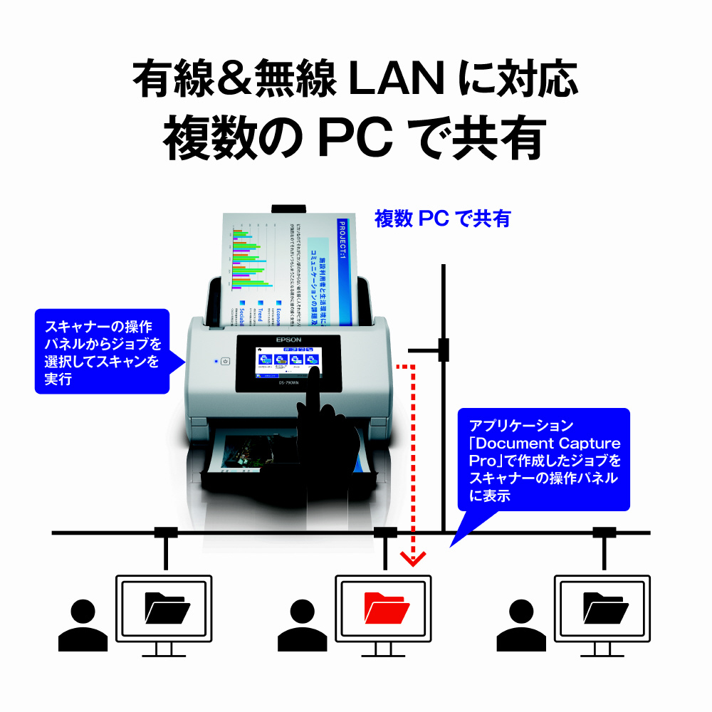 「有線/無線LAN」、「PCレス」、「認証」を搭載したネットワークスキャナー