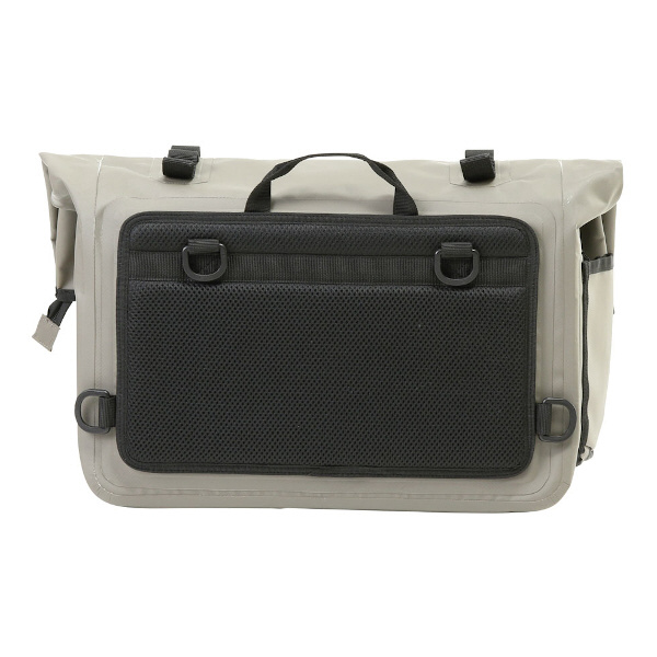 水でシミになる本革、泥が生地に入り込むナイロン生地と比べ、シミにならず泥にも強いターポリン素材を採用したサドルバッグ。