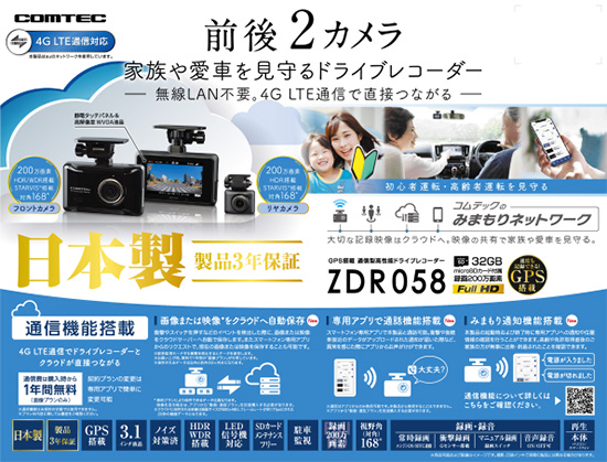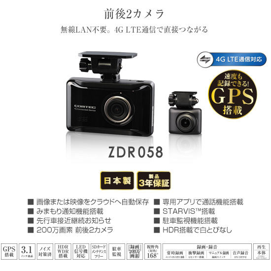 | 商品名 | ドライブレコーダー ZDR058 [前後カメラ対応 /Full HD(200万画素) /セパレート型] |