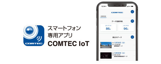 スマートフォン専用アプリ「COMTEC IoT」を使用することで、クラウドに保存されたデータを確認できます。