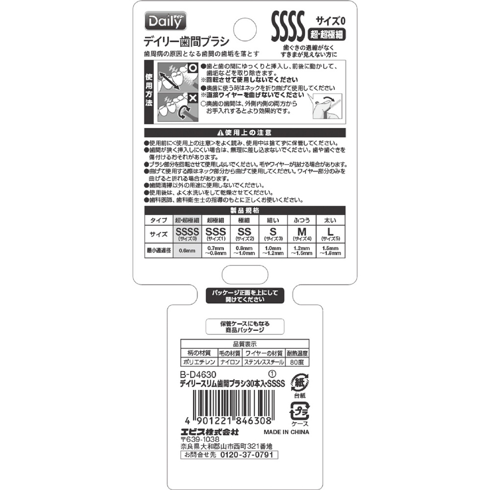 | 商品名 | デイリースリム歯間ブラシ SSSS 30本 デイリー Daily |