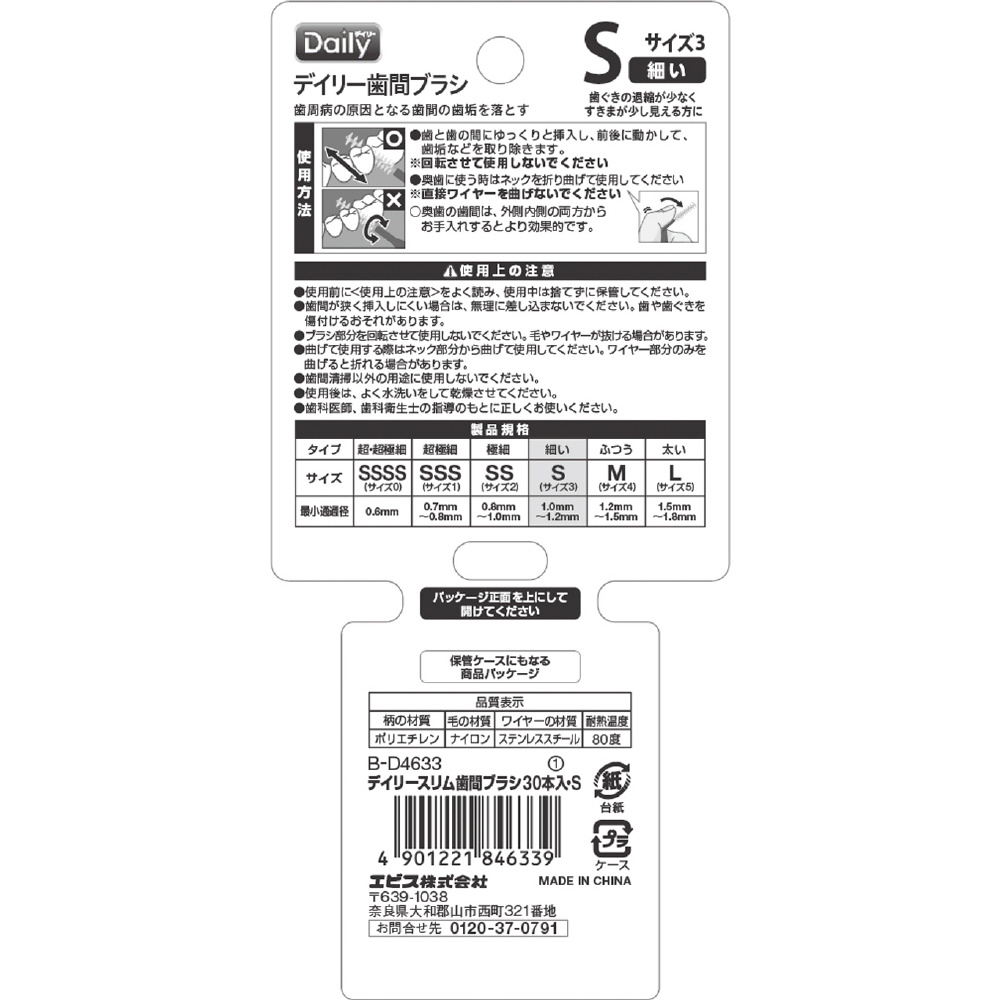 デイリースリム歯間ブラシ S 30本 デイリー Daily