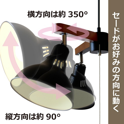 ●プルスイッチ(引きヒモ)で明るさ調節可能(3灯→2灯→1灯→消灯)