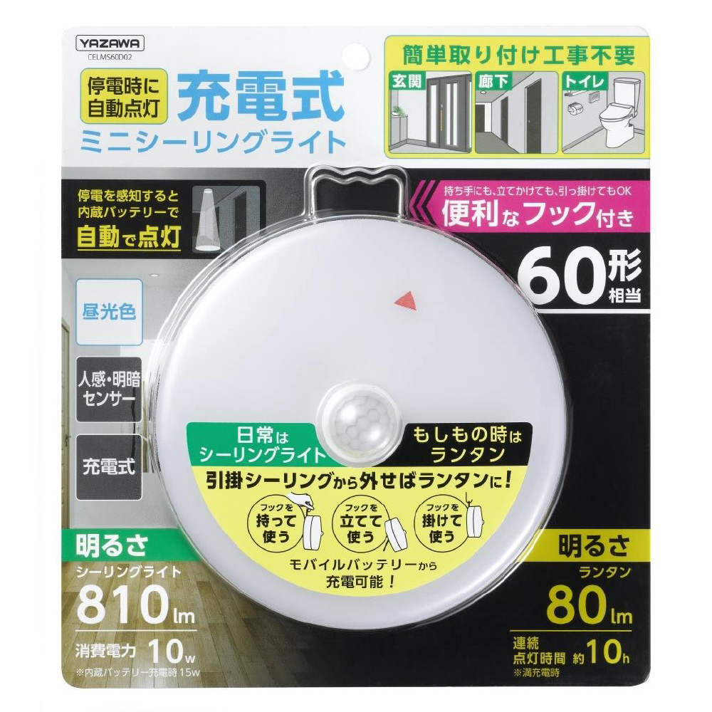 停電時に自動点灯 充電式ミニシーリングライト(昼光色・60W形)