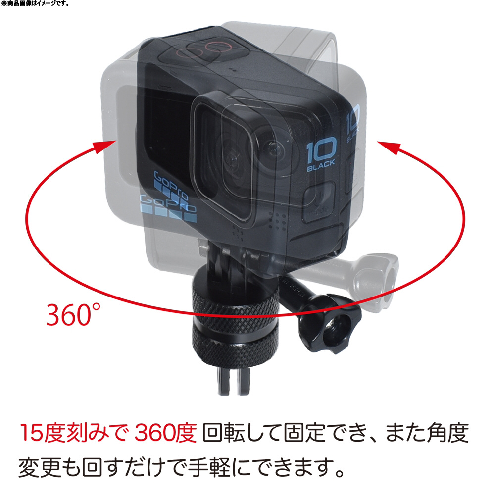 15度刻みで360度回転して固定でき、角度変更も回すだけで手軽にできます。回転マウントが付いていないアクセサリーでも360度回転が可能。