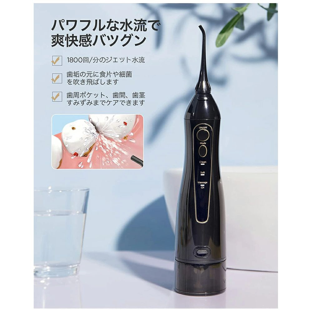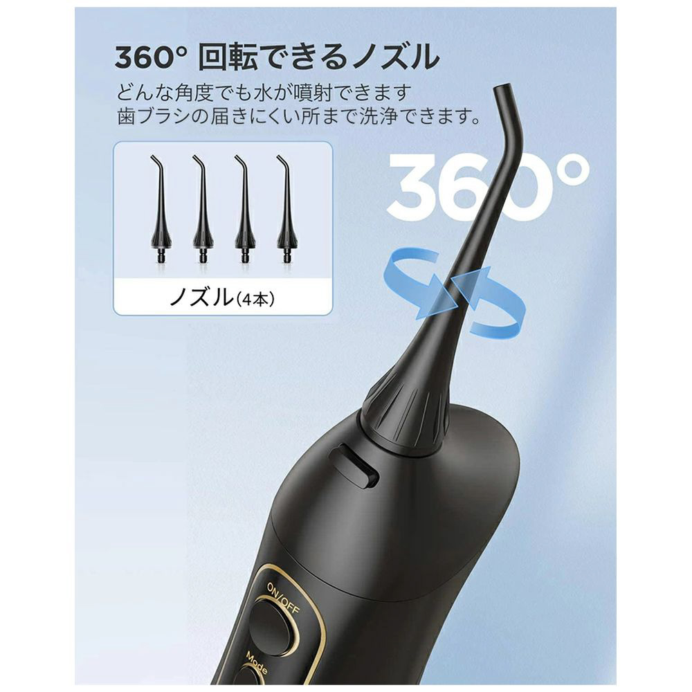 ■360°回転できるノズルはどんな角度でも水が噴射できるので、歯ブラシの届きにくいところまで洗浄できます。