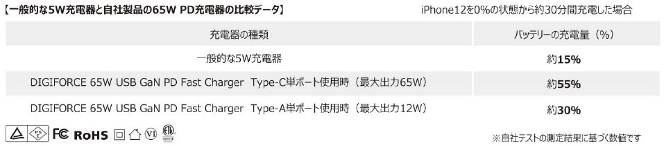 65W USB GaN PD 急速充電器 Type-C/Type-A同時充電対応