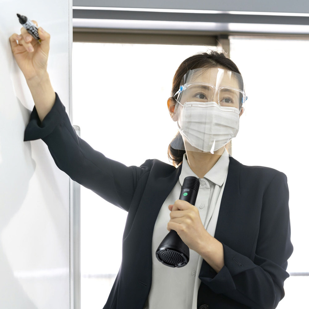 ハンドマイクで話した声がそのまま拡声出力でき授業や小規模ミーティング等に最適なポータブル拡声器スピーカー