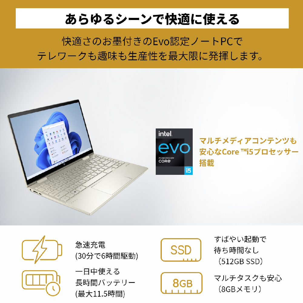ノートパソコン ENVY x360 13-bd0000 ペイルゴールド 54J98PA-AAAB [13.3型 /Windows11 Home /intel Core i5 /メモリ:8GB /SSD:512GB /Office HomeandBusiness /日本語版キーボード /2021年12月モデル]