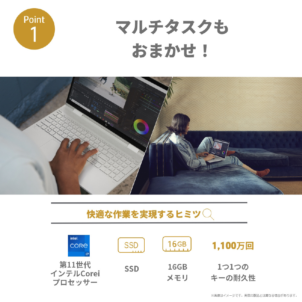 ノートパソコン ENVY x360 15-ed1000 ナチュラルシルバー 54H75PA-AAAB [15.6型 /Windows11 Home /intel Core i7 /メモリ:16GB /SSD:512GB /Office HomeandBusiness /日本語版キーボード /2021年12月モデル]