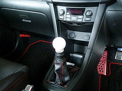 スイフトスポーツZC32S専用のシフトノブ(球型タイプ)。熱が伝わりにくく、シフト操作の感覚を感じやすい高分子材料ポリアセタール樹脂をマテリアルに採用。インテリアコーディネートに合わせて選んでいただけるよう、2種類のカラーを用意しました。