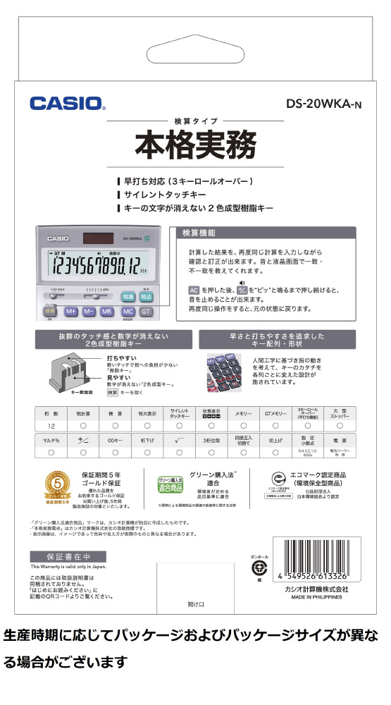 | 商品名 | 本格実務電卓(検算) DS-20WKA-N [12桁] |