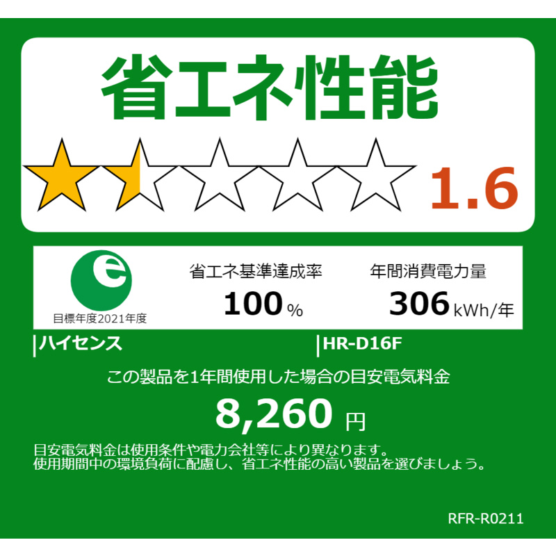 冷蔵庫 ホワイト HR-D16F [幅48.1cm /162L /2ドア /右開きタイプ /2022年]