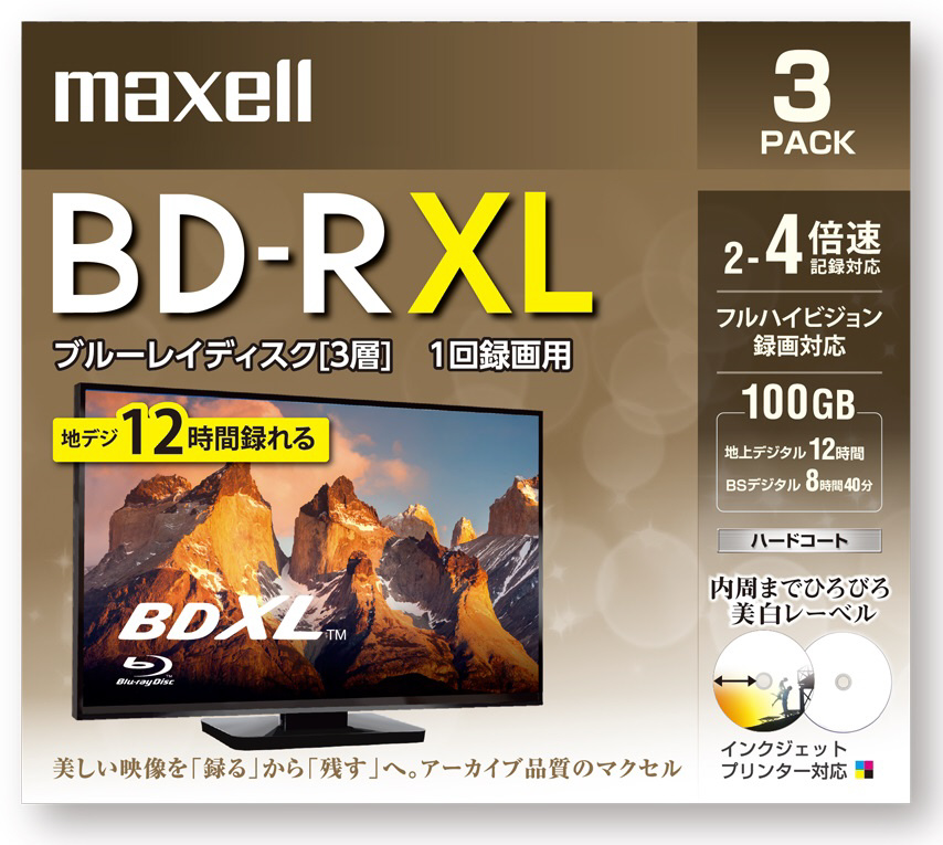 録画用ブルーレイディスク BD-R XL ひろびろ美白レーベルディスク(2〜4倍速記録対応・1回録画用)