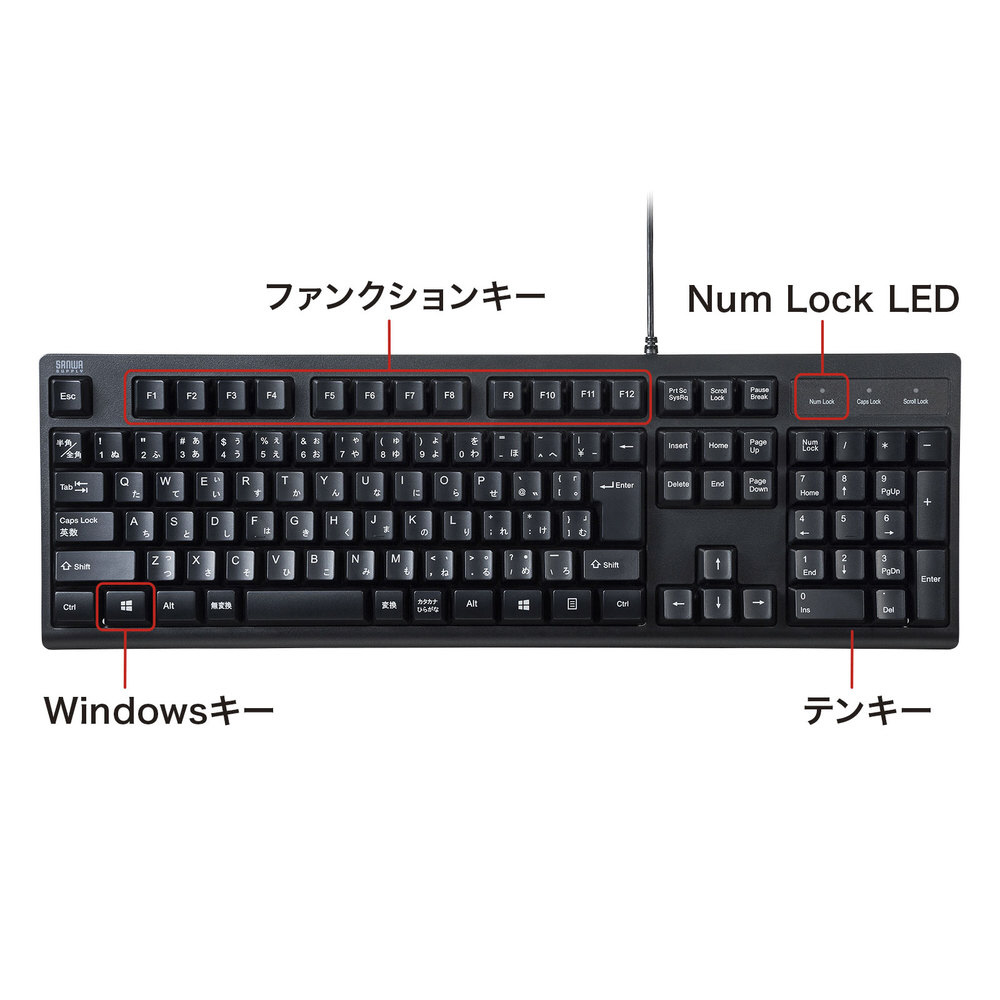 | 商品名 | キーボード (Windows11対応) ブラック SKB-109UBK [有線 /USB] |