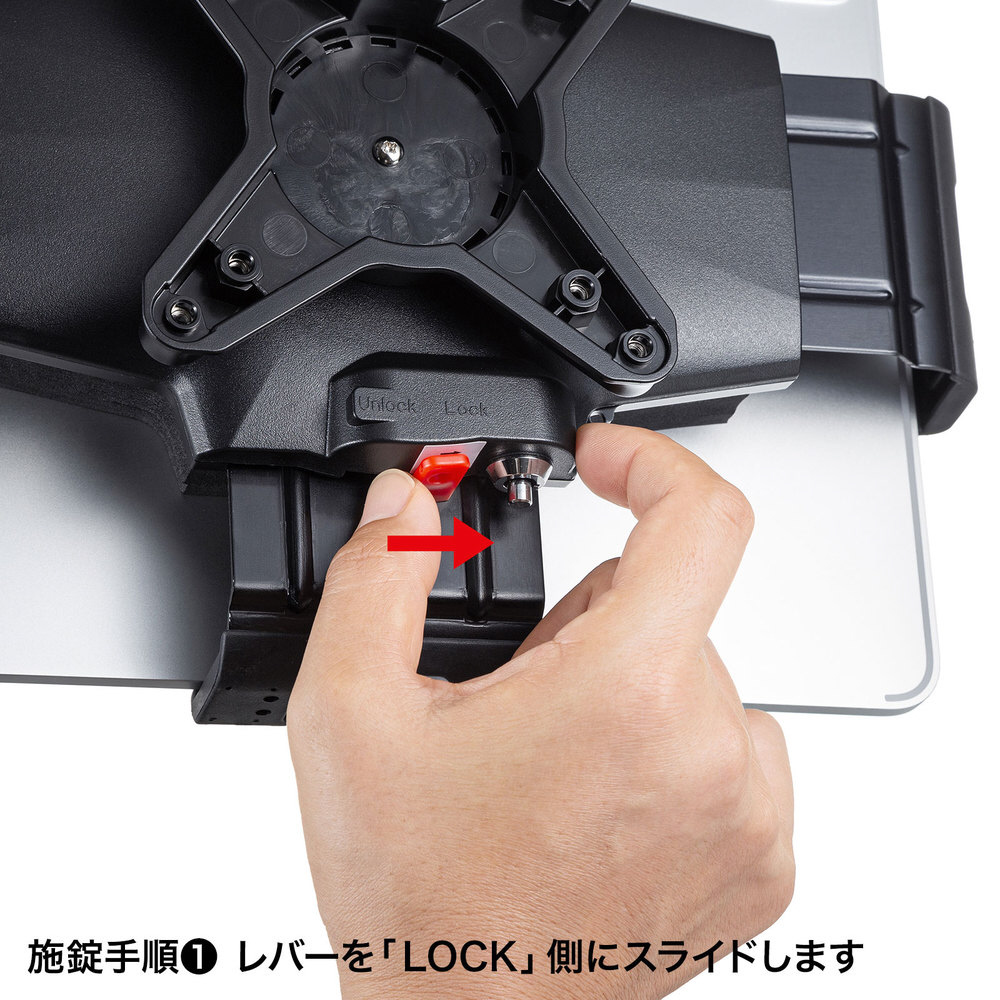 タブレットPC用 [W240〜320xD5〜30xH170〜219mm以内 /〜厚さ30mm /iPad対応] 鍵付きVESA取付けホルダー ブラック CR-LATAB30