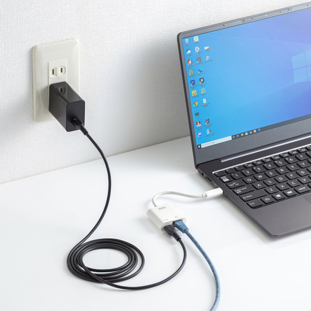PD給電対応でパソコンを充電しながら高速ネットワーク通信が可能。
