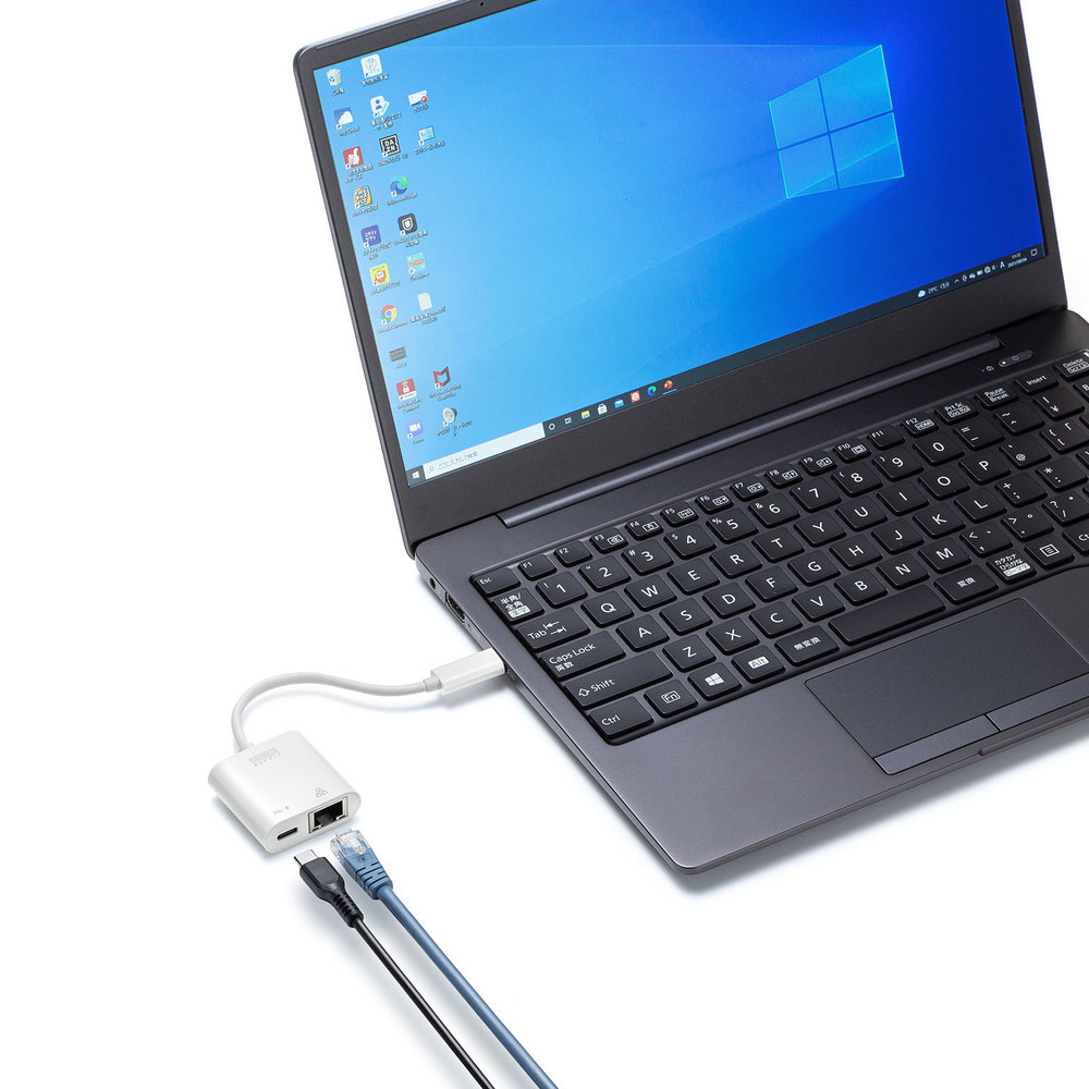 LAN変換アダプタ [USB-C オス→メス LAN /USB-Cメス給電 /USB Power Delivery対応 /100W] 1Gbps対応(Nintendo Switch、iPadOS/Mac/Windows11対応) ホワイト USB-CVLAN7W