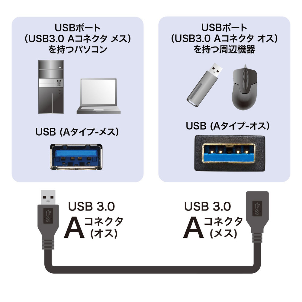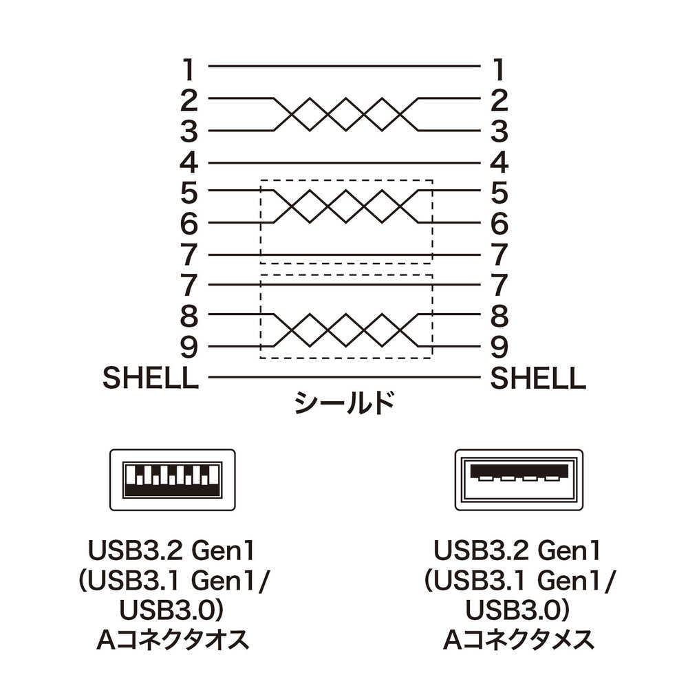 | 仕様1 | [コネクタ形状] USB3.0 Aコネクタオス−USB3.0 Aコネクタメス (USB Type A - USB Type A)または(USB Standard-A - USB Standard-A) USB 3.2 Gen1・USB 3.1 Gen1 対応 |