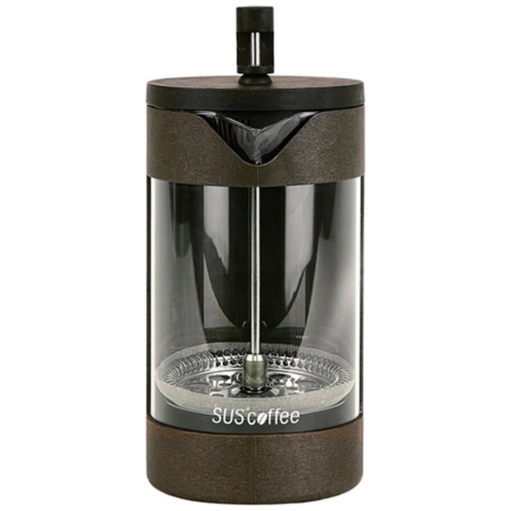 蓋と外側にコーヒーかす素材を使用したコーヒー好きのためのフレンチプレス
