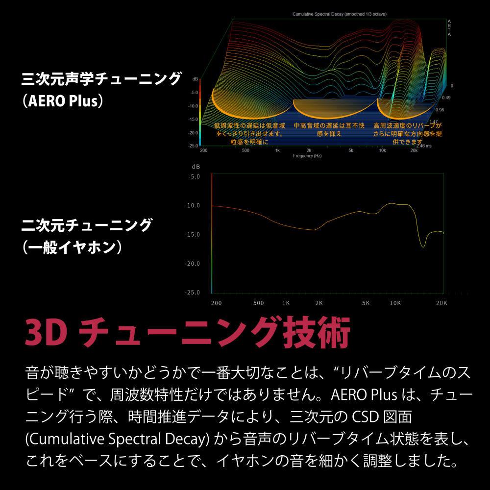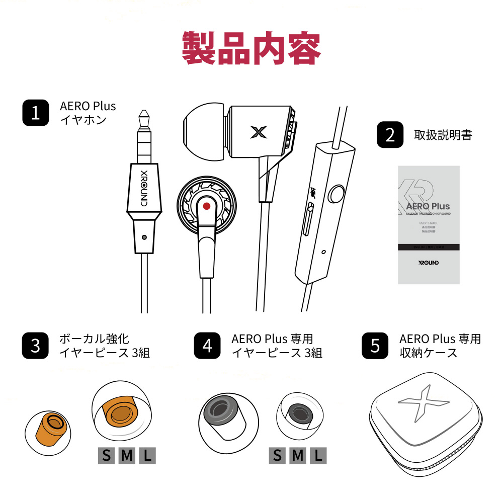 | 付属品 | AERO特別イヤーピース、ボーカル強化イヤーピース、AERO Plus収納ケース、取扱説明書 |