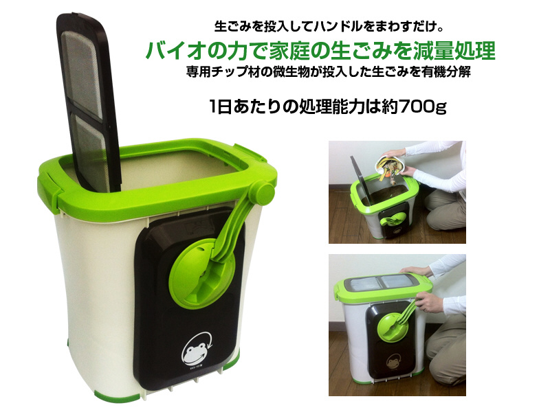 室内型家庭用生ごみ処理機 エコクリーン 自然にカエルS 基本セット。