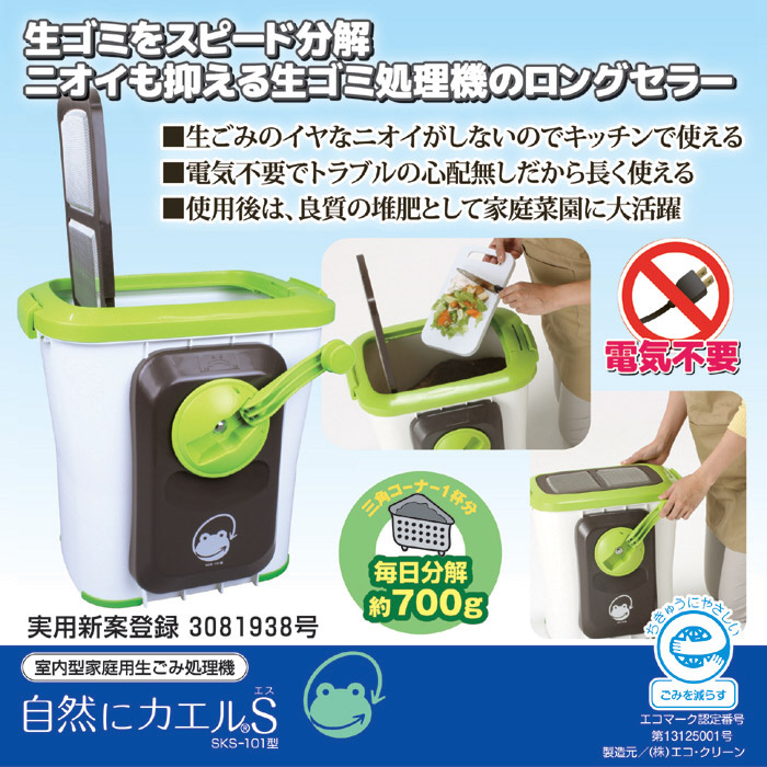 室内型家庭用生ごみ処理機 エコクリーン 自然にカエルS 基本セット SKS-101 [バイオ式]