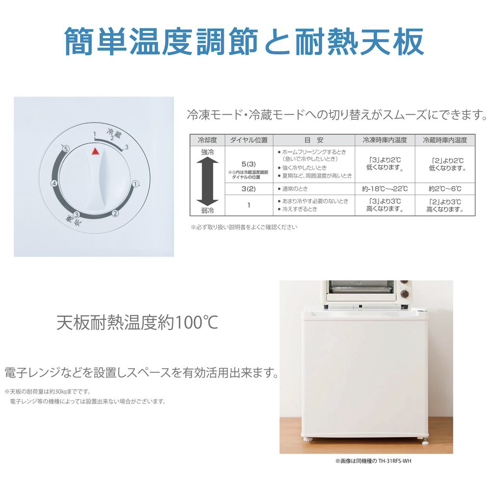 冷凍庫 ブラック TH-31RFS1-BK [幅47.4cm /31L /1ドア /右開き/左開き付け替えタイプ]