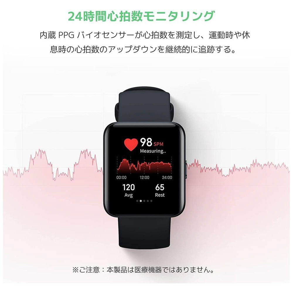 高解像度でカラフルな1.55インチHDタッチディスプレイ。運動状況や健康データのモニタリングも可能。防水仕様(5ATM)なのでシャワーやプールでも使えます。
