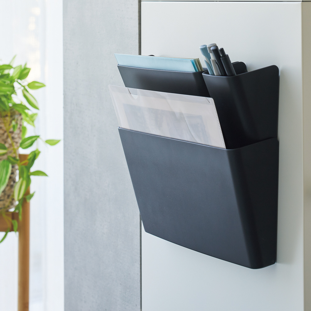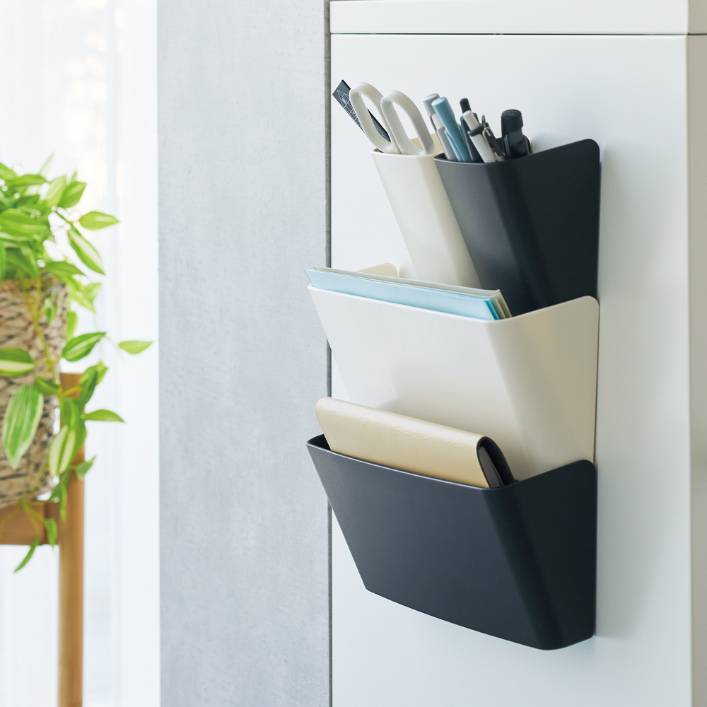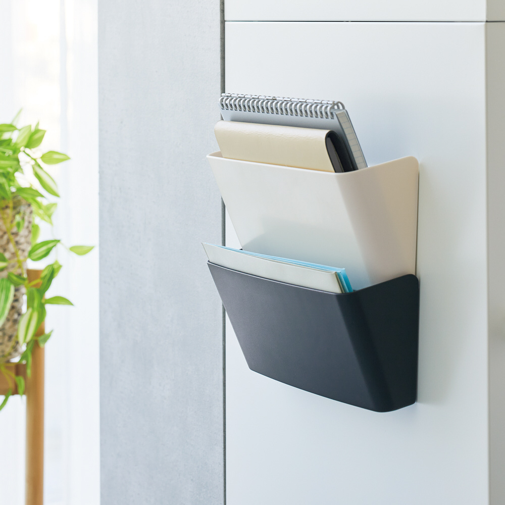 前傾形状で取り出しやすい!重ねられる背面形状なので省スペースで使える。A5ノートや長3封筒の収納に。MサイズにはSサイズ(A−7470)が3個重ねられます。A−7471にはSサイズ(A−7470)、Lサイズ(A−7472)と組み合わせて、壁面収納に。
