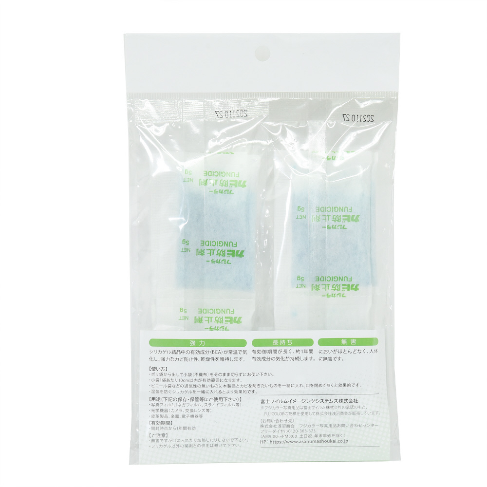 シリカゲル結晶中の有効成分(BCA)が常温で気化し、強力なカビ防止性、乾燥性を維持します。