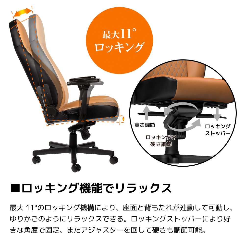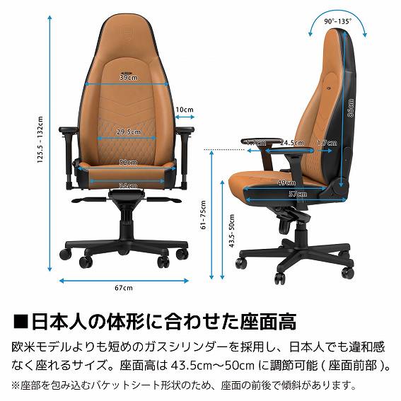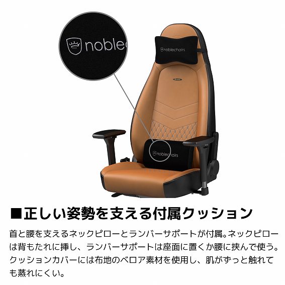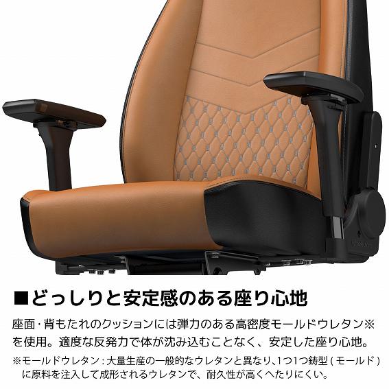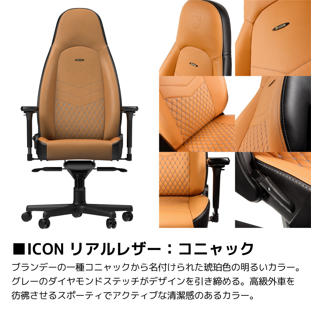 高級スポーツカーをモチーフにしたICONに本革素材を使用し、さらなるラグジュアリーを追求したハイエンドモデル。noblechairsの美学と世界観が投影された、滑らかな流線形のフォルム。