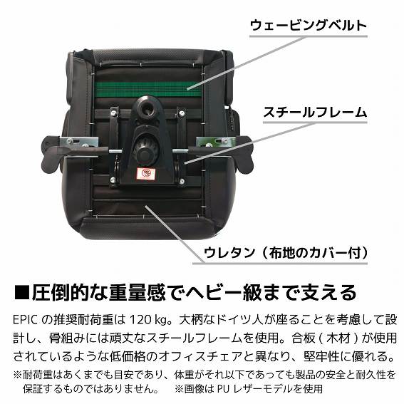 ※背もたれの背面や側面には高品質PUレザー(合成皮革)を使用しています。
