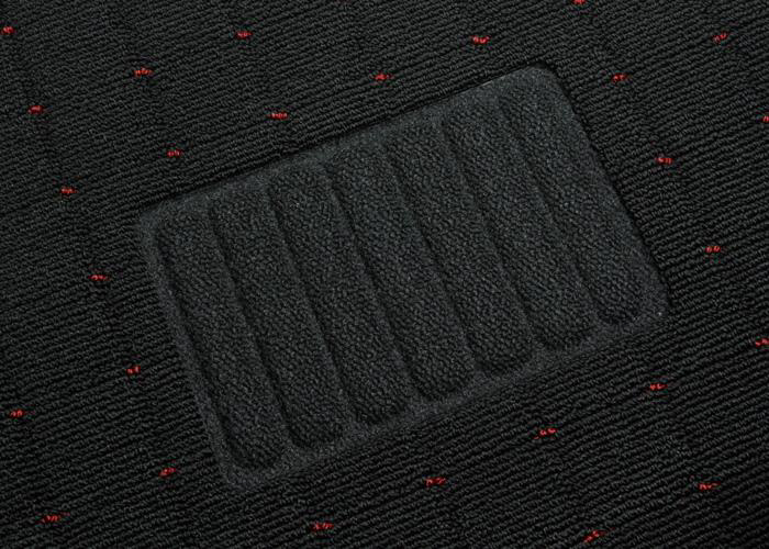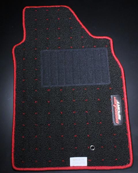前席用の2枚には刺繍でモンスタースポーツのロゴをあしらい、ブラック×レッドのコントラストがインテリアに華やかさを与えます。機能性・耐久性に優れた素材とズレ防止構造、ヒールパッドの装備によってスポーツドライビングをしっかりとサポートします。